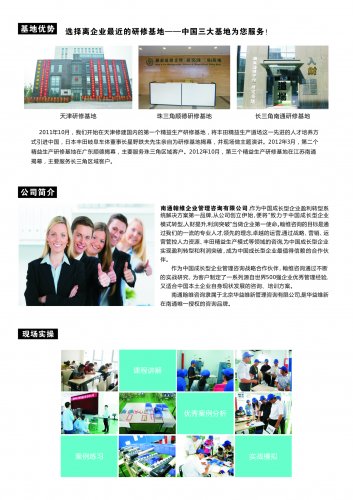 南通翰维企业管理咨询有限公司是一家专业从事精益生产推广的技术服务机构,专业协助生产型企业格局升级,帮助企业降低制造成本、提高生产效率、提升产品质量,获取客户最大的满意度。公司由日本丰田MIC生产性研究所授权,在南通建有大型生产改善实操道场及管理研修基地,由TPS资深顾问团队为企业提供落地式项目改善并协助实施,同时基地常年开设精益生产初、中、高级课程及丰田海外研修班,是长三角地区目前实力最强、综合获评最高的精益生产服务机构。